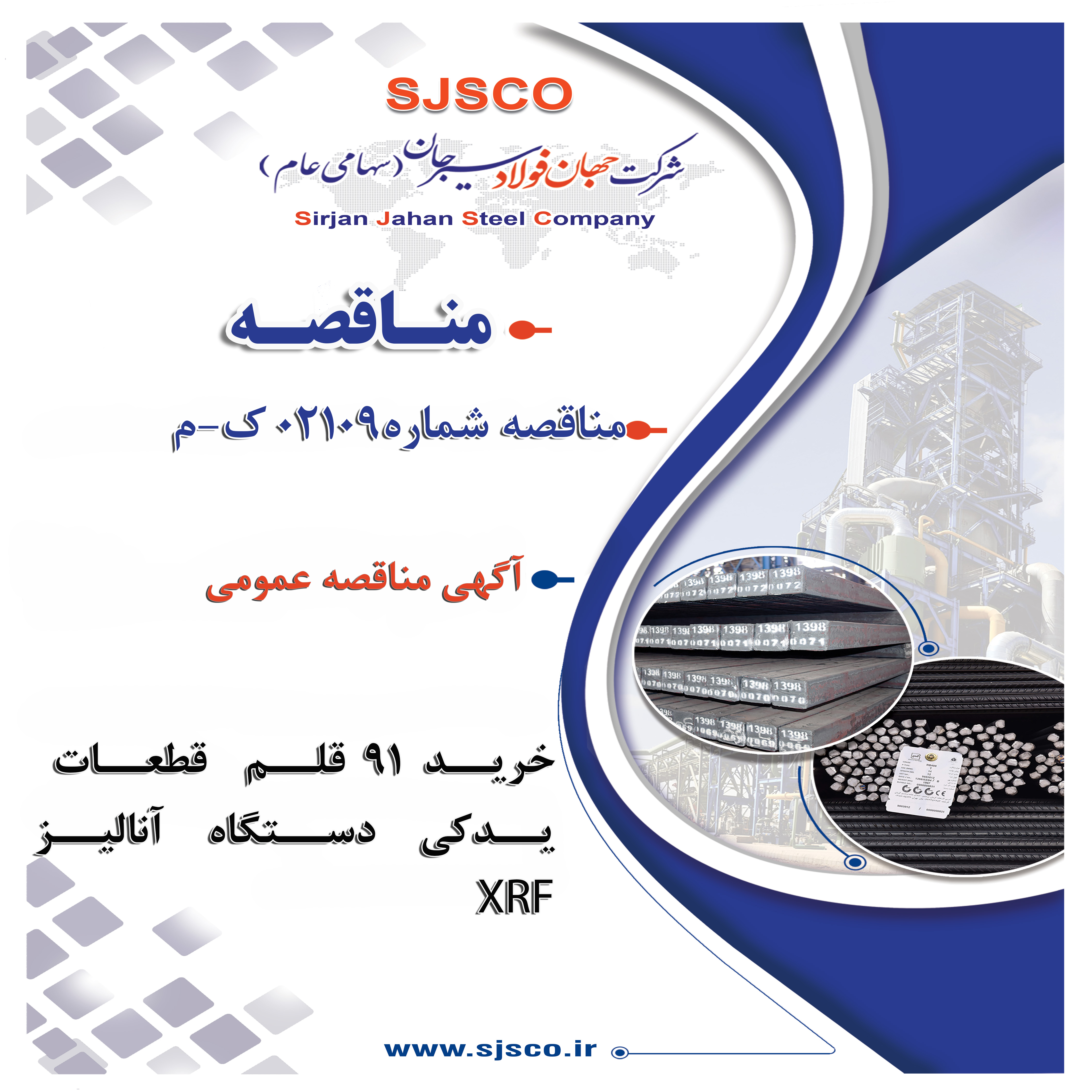 " آگهی تجدید مناقصه عمومی دو مرحله ای "خريد 1 (يك) دستگاه آنالیزXRF دیجیتالی شرکت جهان فولاد سیرجان"