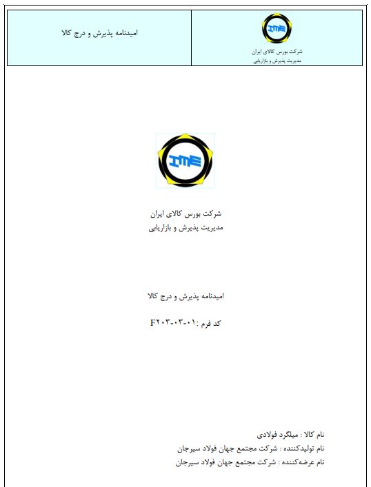 اميدنامه پذيرش و درج کالا (میلگرد) ...