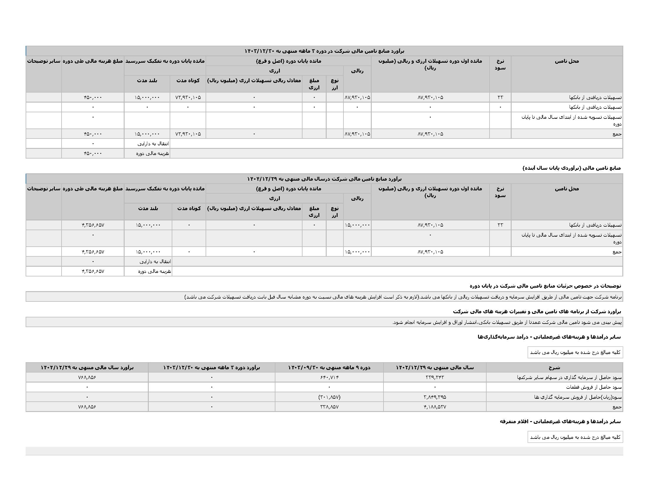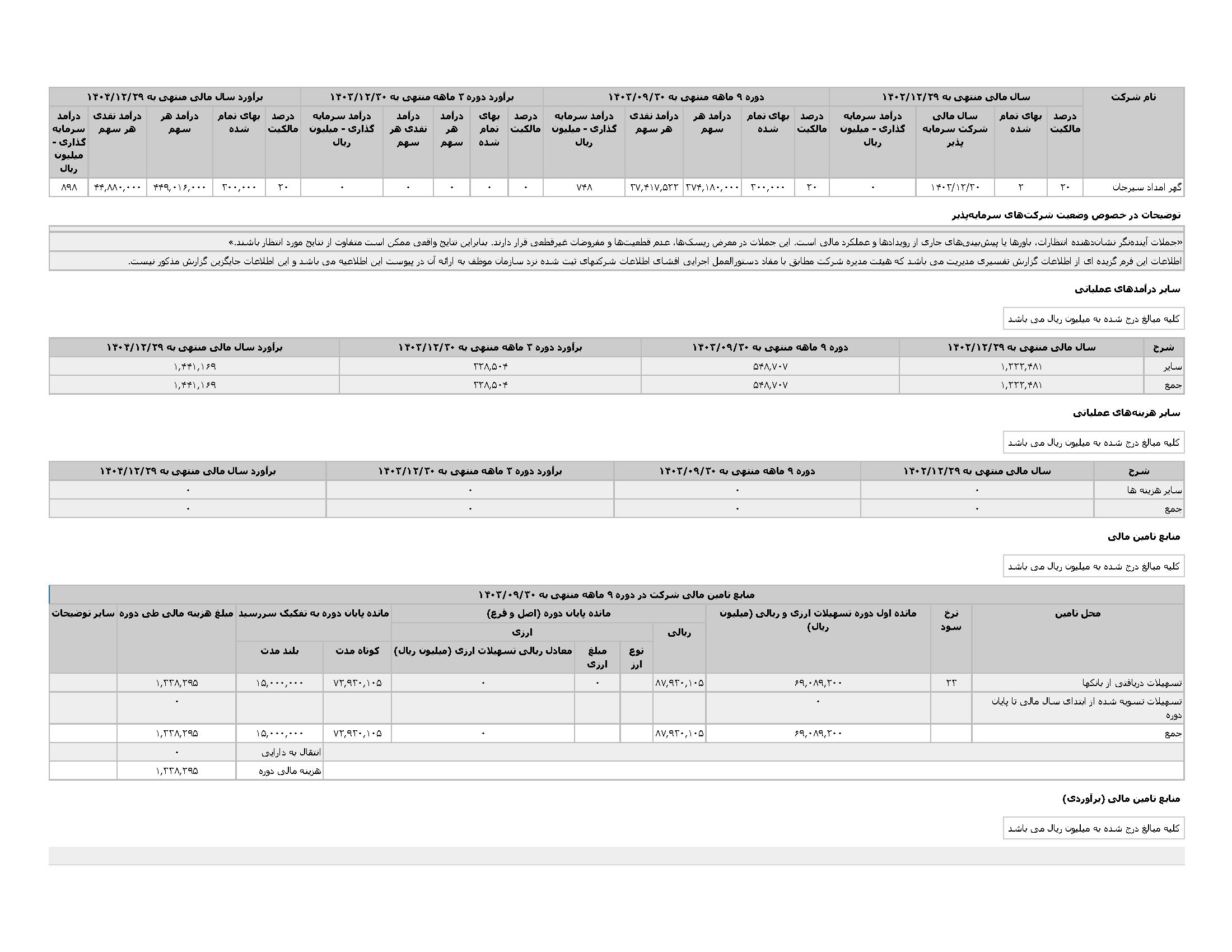 صورتهای مالی میاندورهای دوره ۹ ماهه منتهی به ۱۴۰۳/۰۹/۳۰ (حسابرسی نشده)