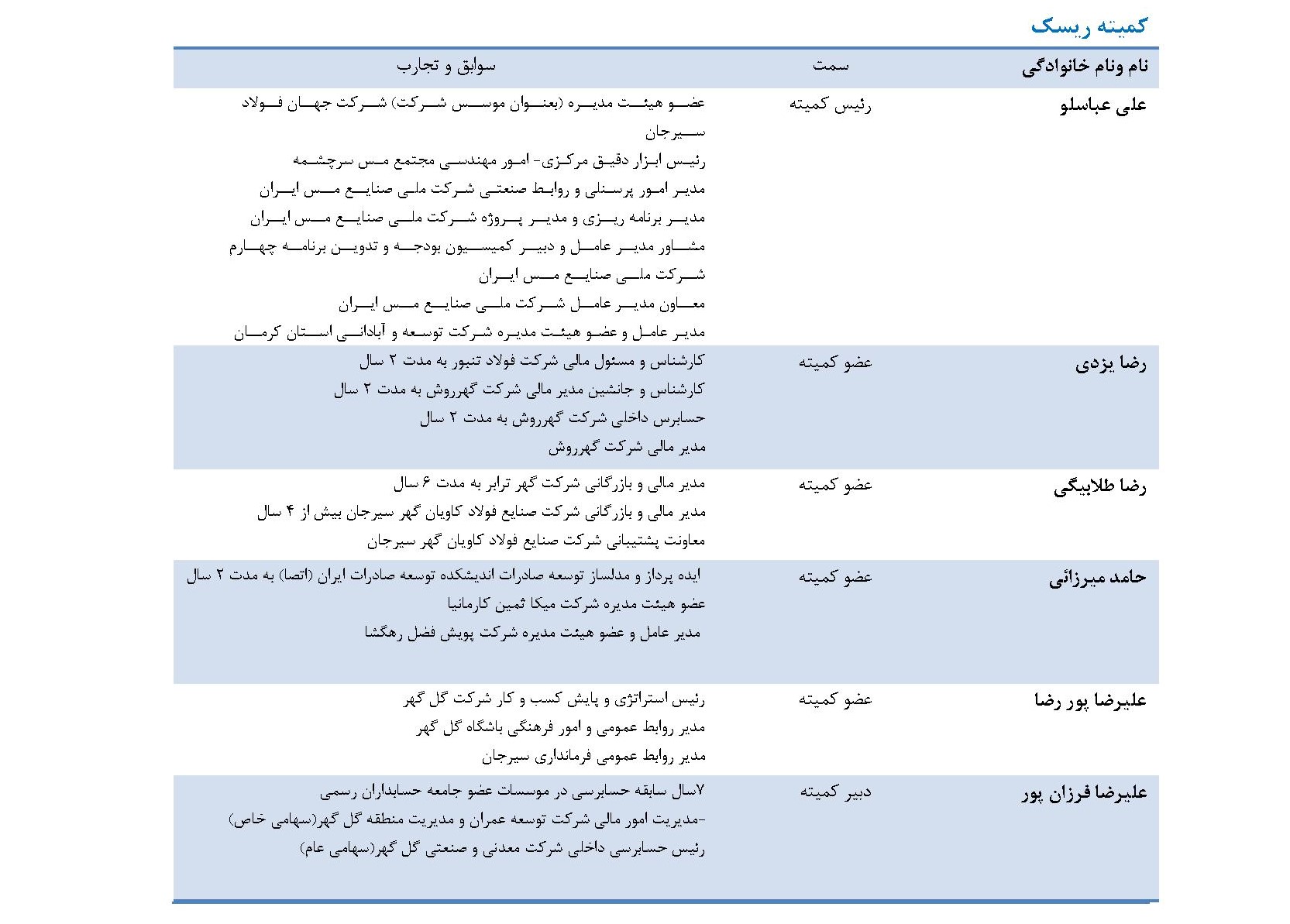 شرکت جهان فولاد سیرجان (سهامی عام) - کمیته ریسک