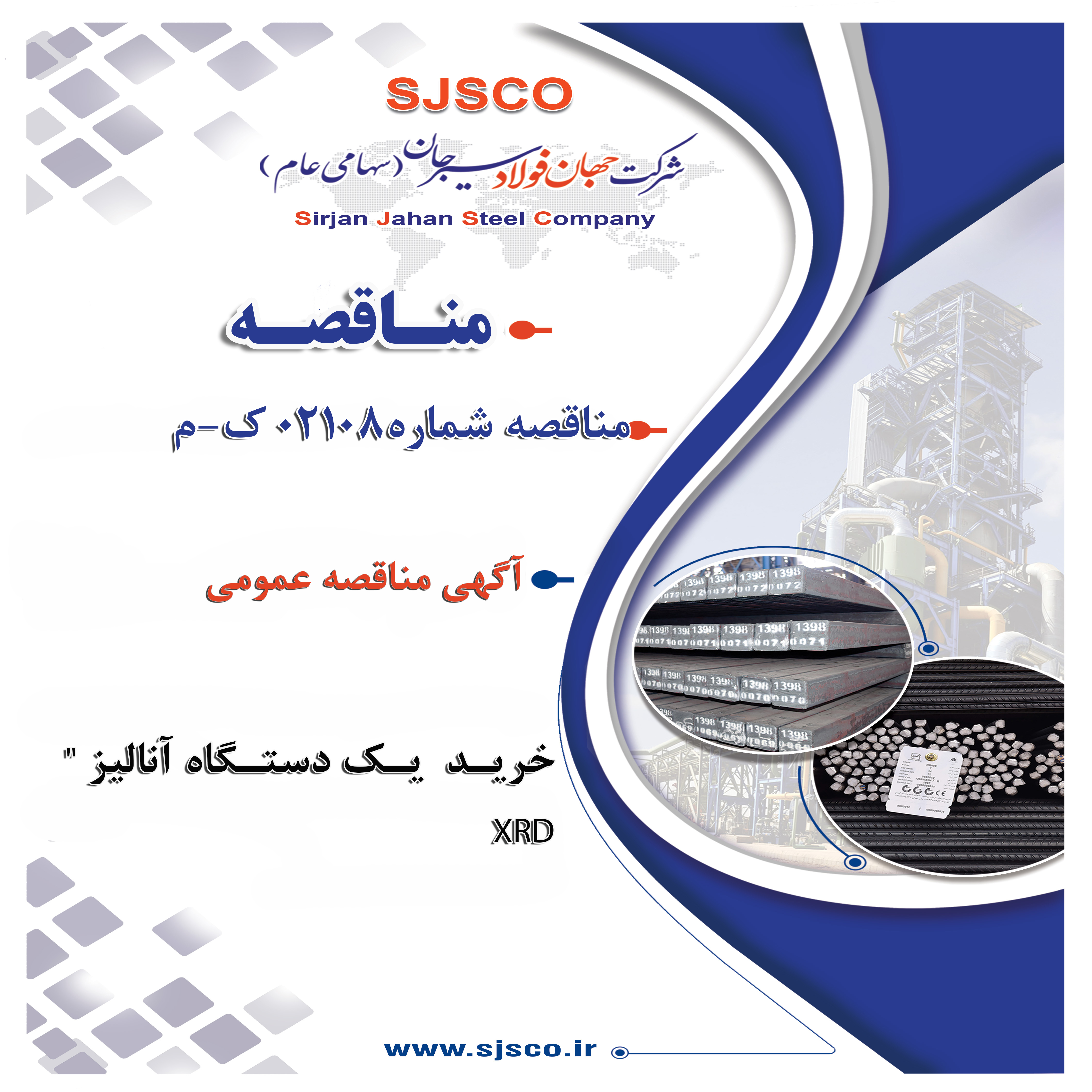 " آگهی مناقصه عمومی دو مرحله ای " خريد 1 (يك) دستگاه آنالیزXRD برند BRUKER مدل 6D PHASER شرکت جهان فولاد سیرجان" " مناقصه شماره 02108-ک-م"