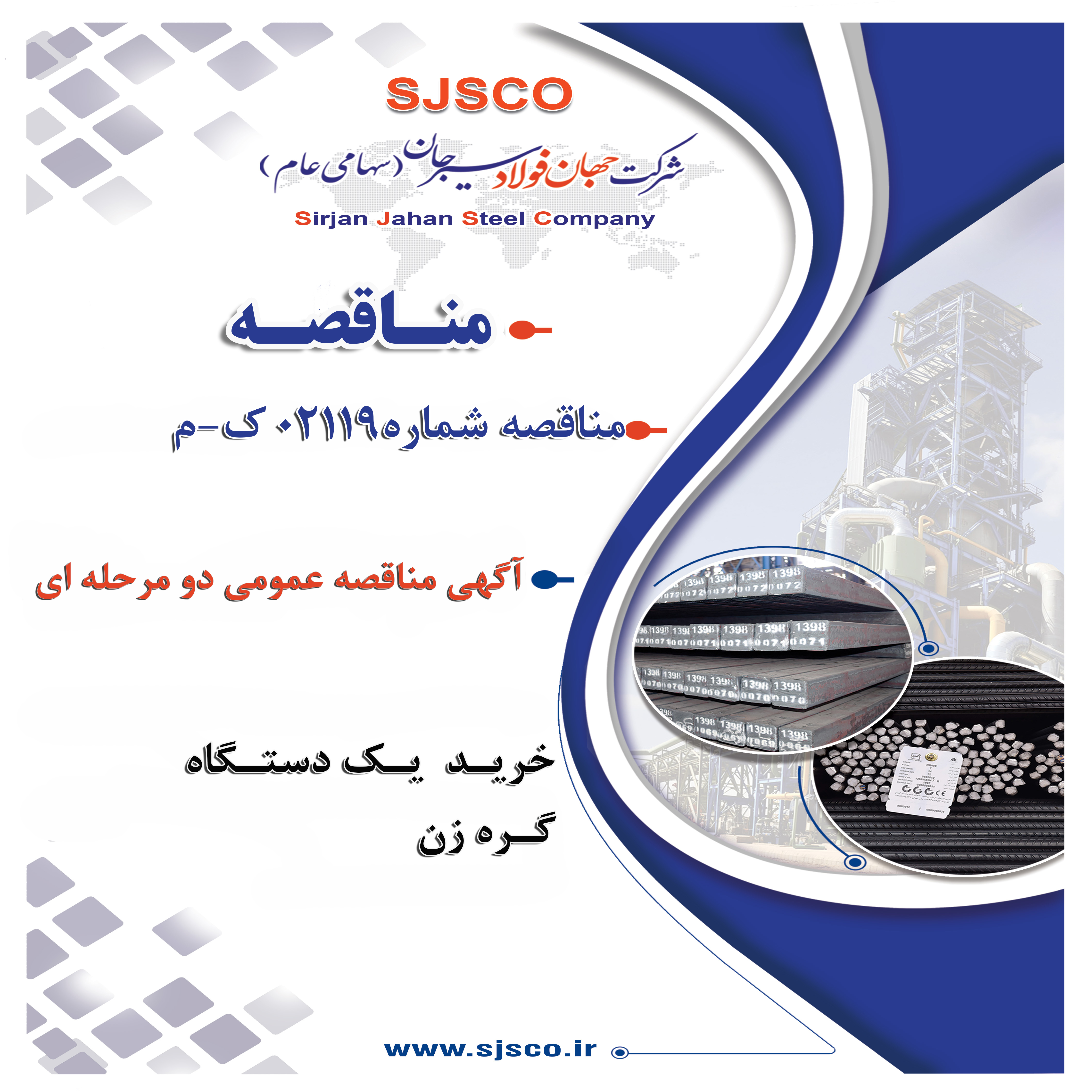 " آگهی تجدید مناقصه عمومی دو مرحله ای " خرید 1 (یک) دستگاه گره زن شرکت جهان فولاد سیرجان" " مناقصه شماره 02119-ک-م"