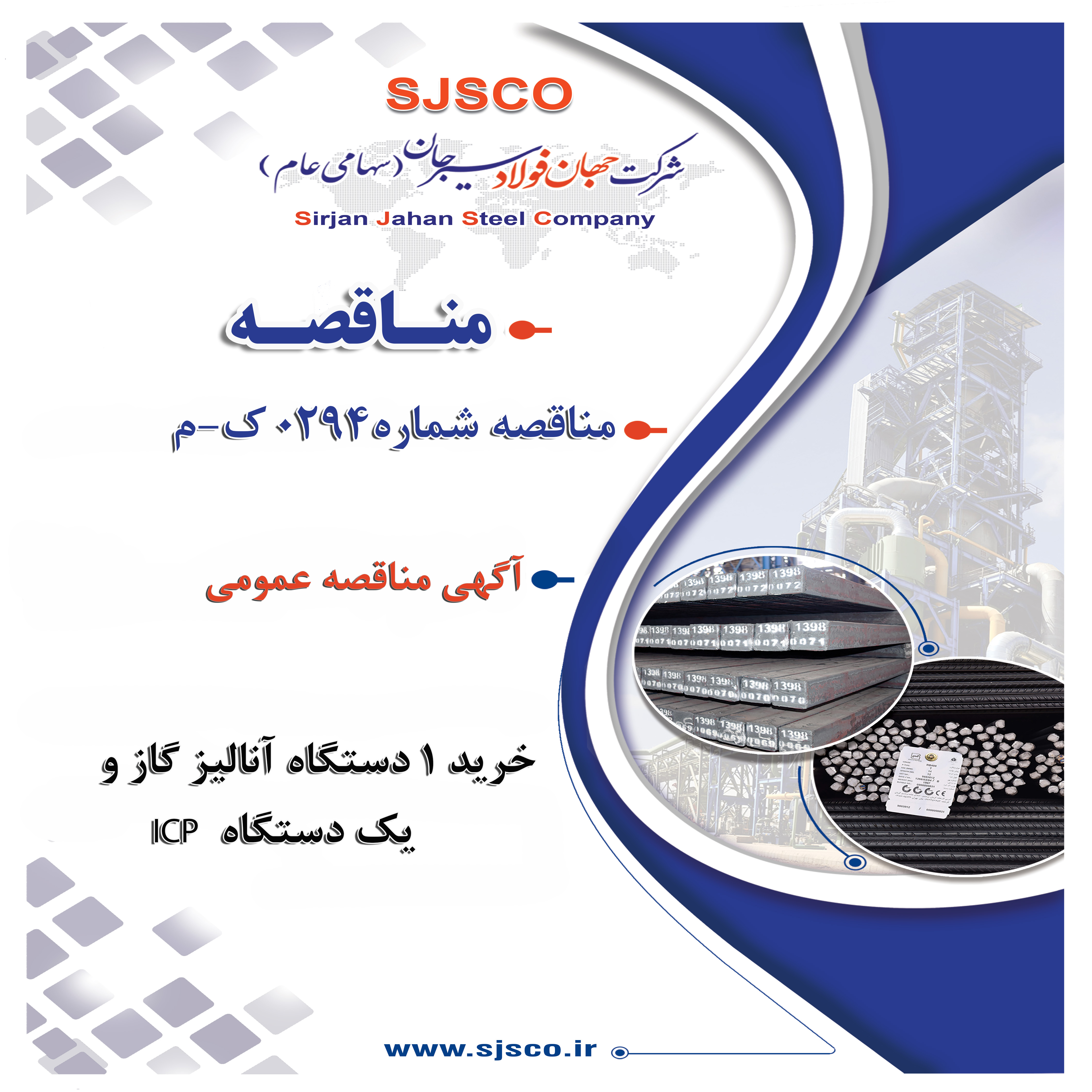 " آگهی مناقصه عمومی دو مرحله ای " خريد 1 (يك) دستگاه آنالیز گاز برند AGILENT و یک دستگاه ICP برند ALGILENT شرکت جهان فولاد سیرجان" " مناقصه شماره 0294-ک-م"