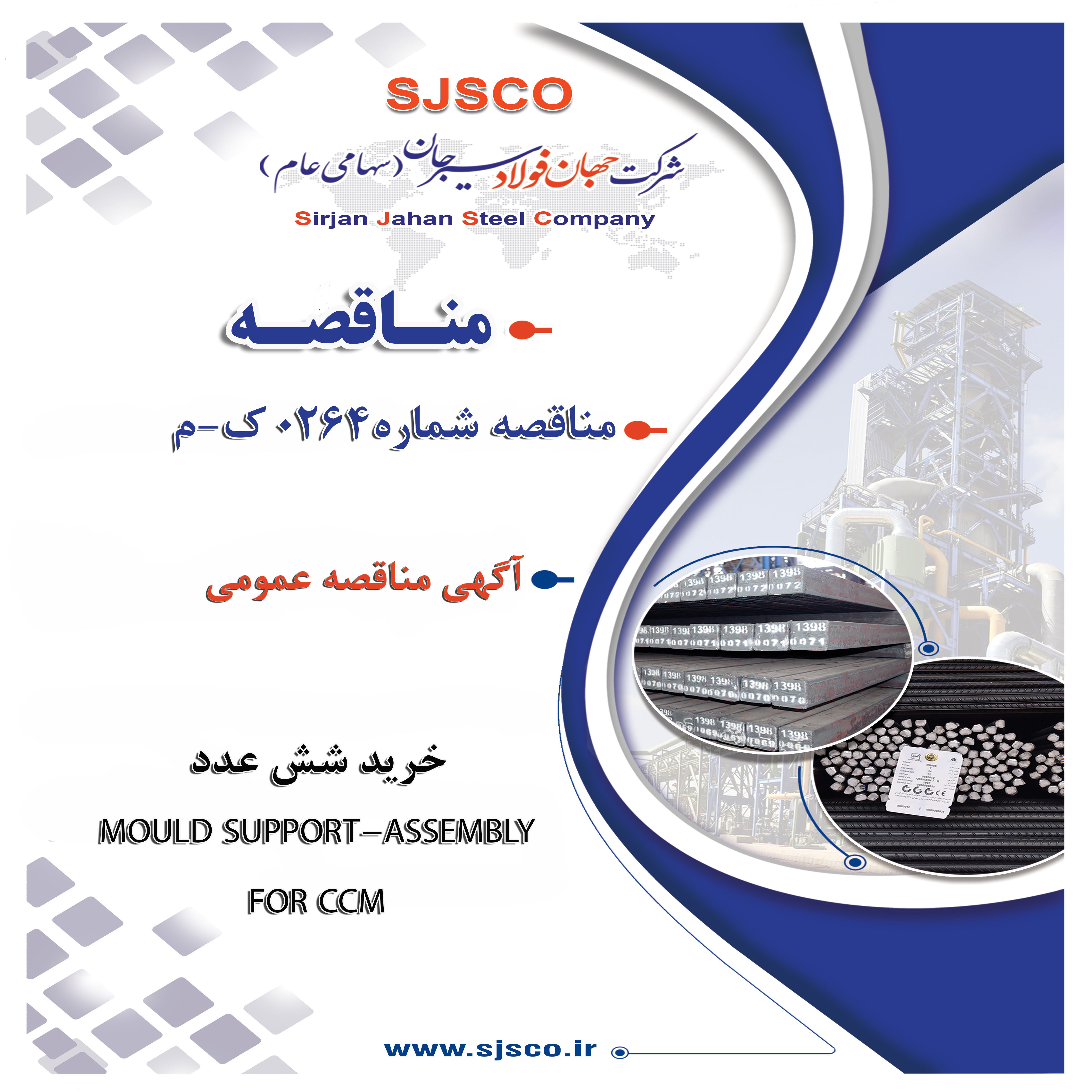" آگهی مناقصه عمومی " خرید شش عدد MOULD SUPPORT-ASSEMBLY FOR CCM شرکت جهان فولاد سیرجان" " مناقصه شماره 0264-ک-م"