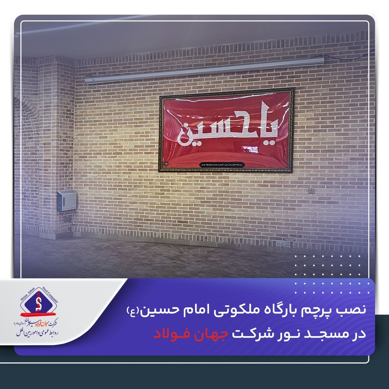 نصب پرچم بارگاه ملکوتی امام حسین(ع) در مسجد نور شرکت جهان فولاد