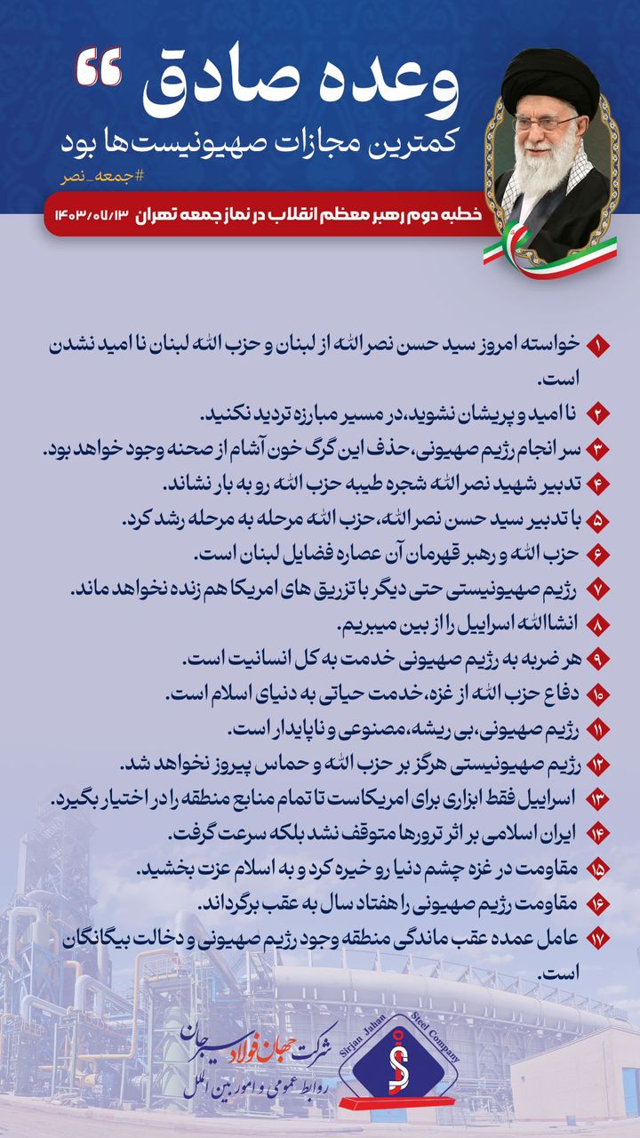 *محور بیانات رهبر معظم انقلاب در خطبه دوم نماز جمعه تهران ۱۳ مهرماه ۱۴۰۳*