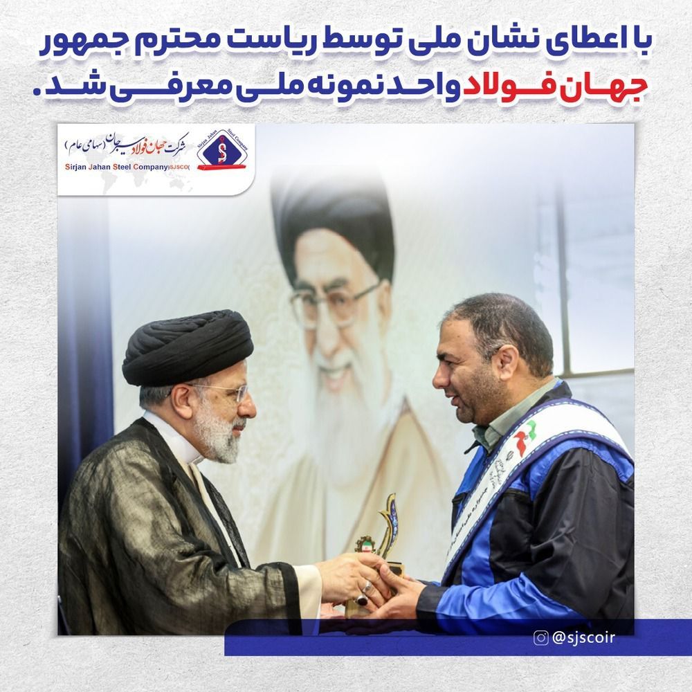 *با اعطای نشان ملی توسط ریاست محترم جمهور، جهان فولاد واحد نمونه ملی معرفی شد*
