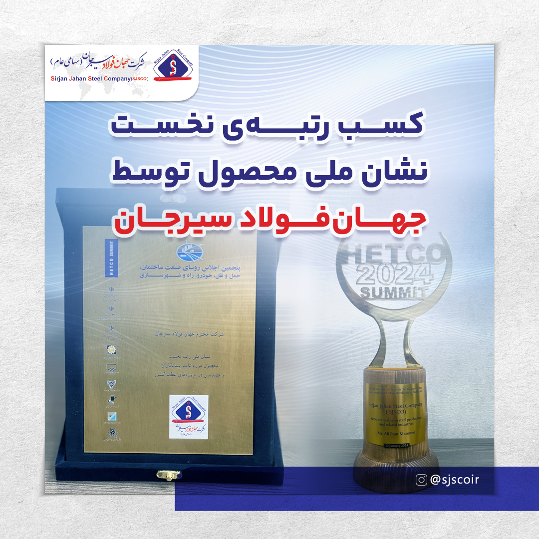 کسب رتبهی نخست نشان ملی محصول توسط جهانفولاد سیرجان