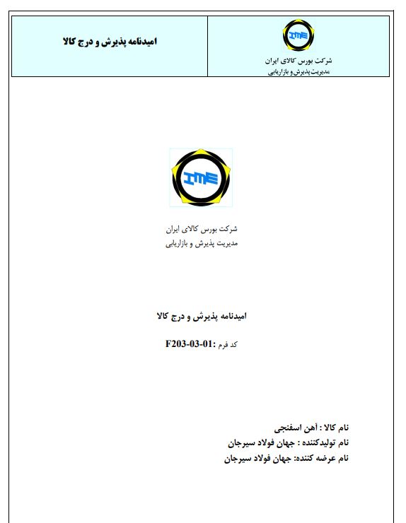 اميدنامه پذيرش و درج کالا (شمش فولادی) ...