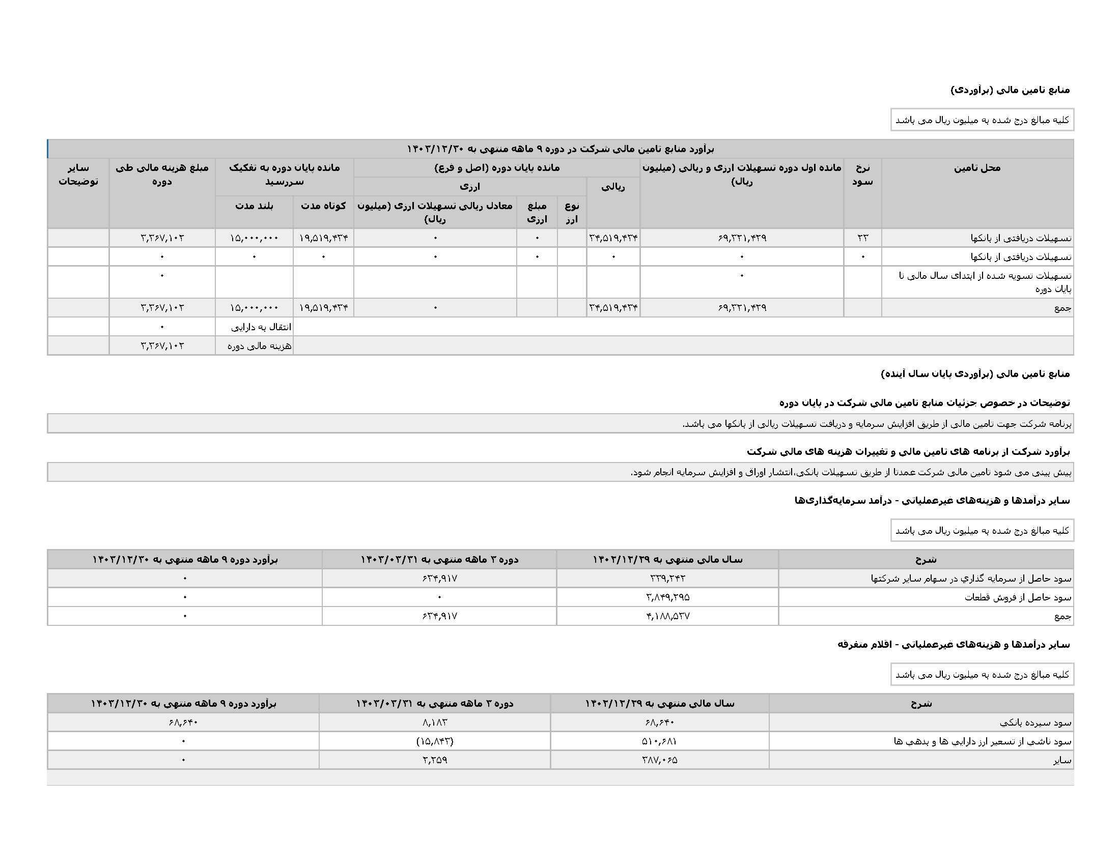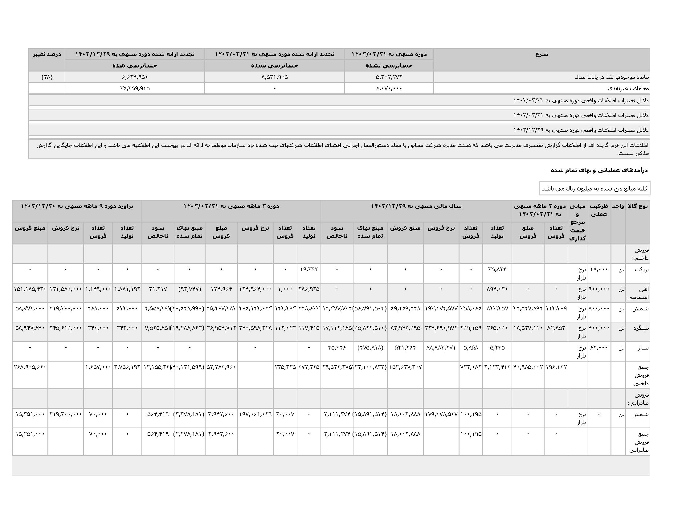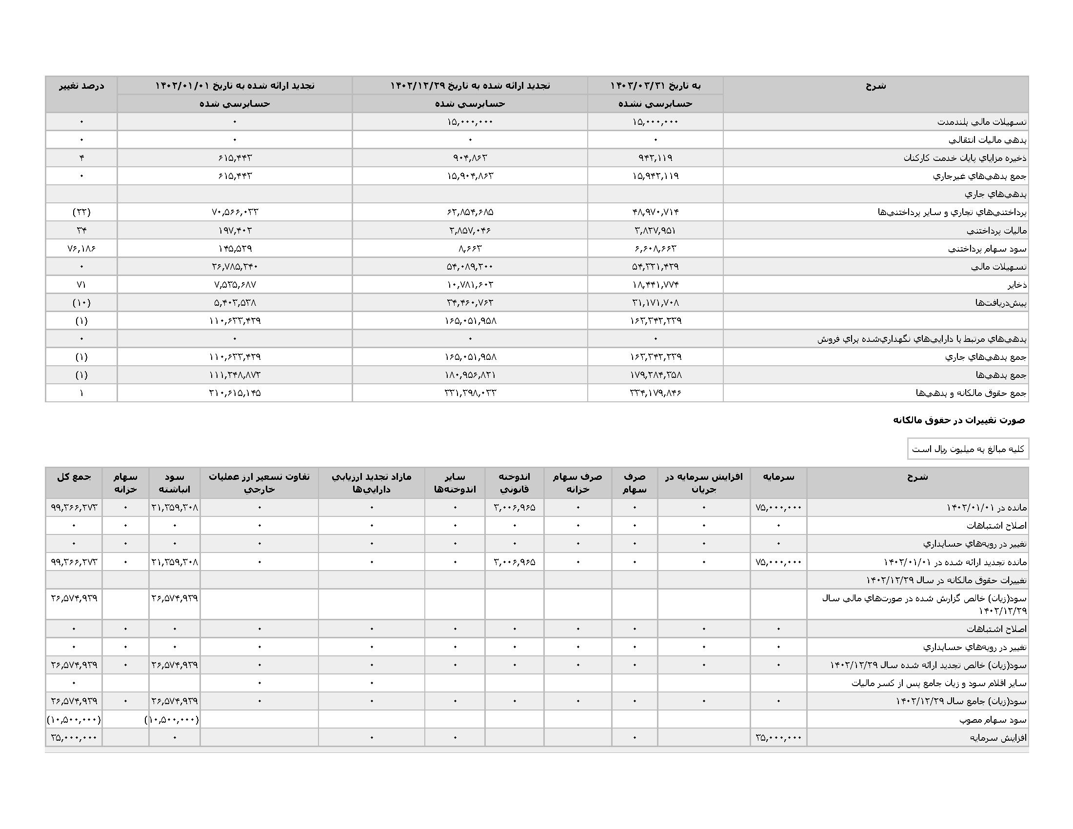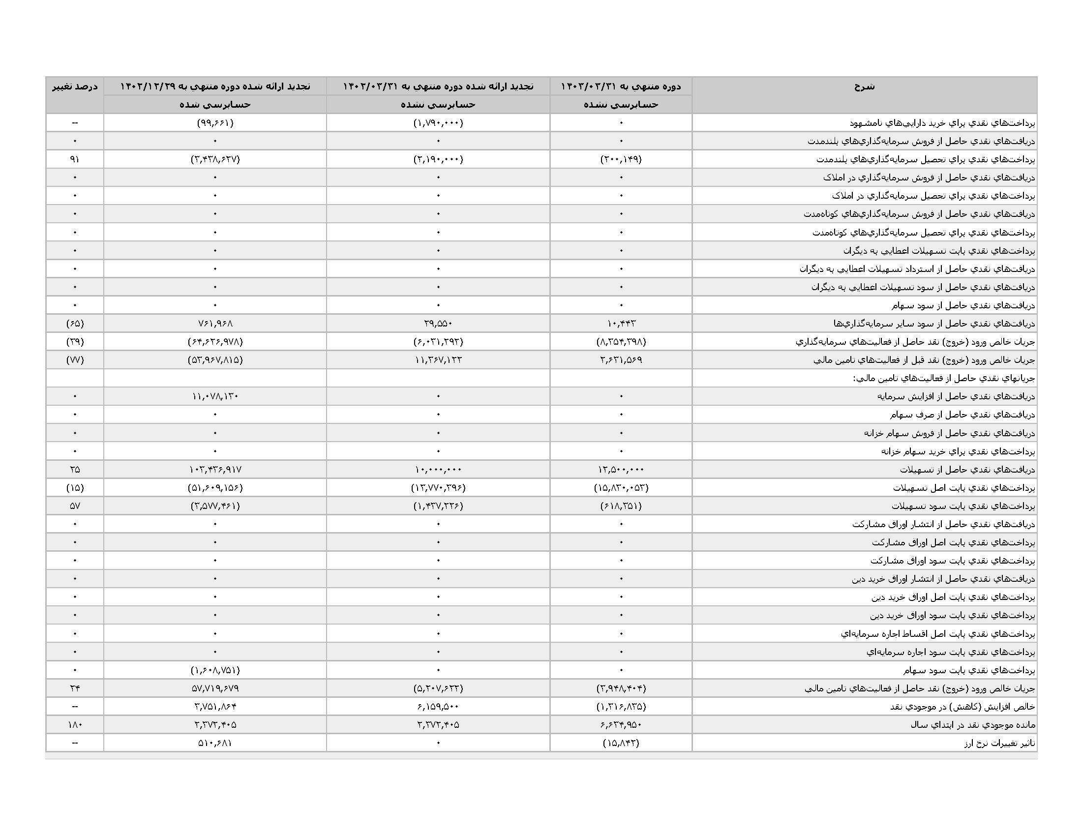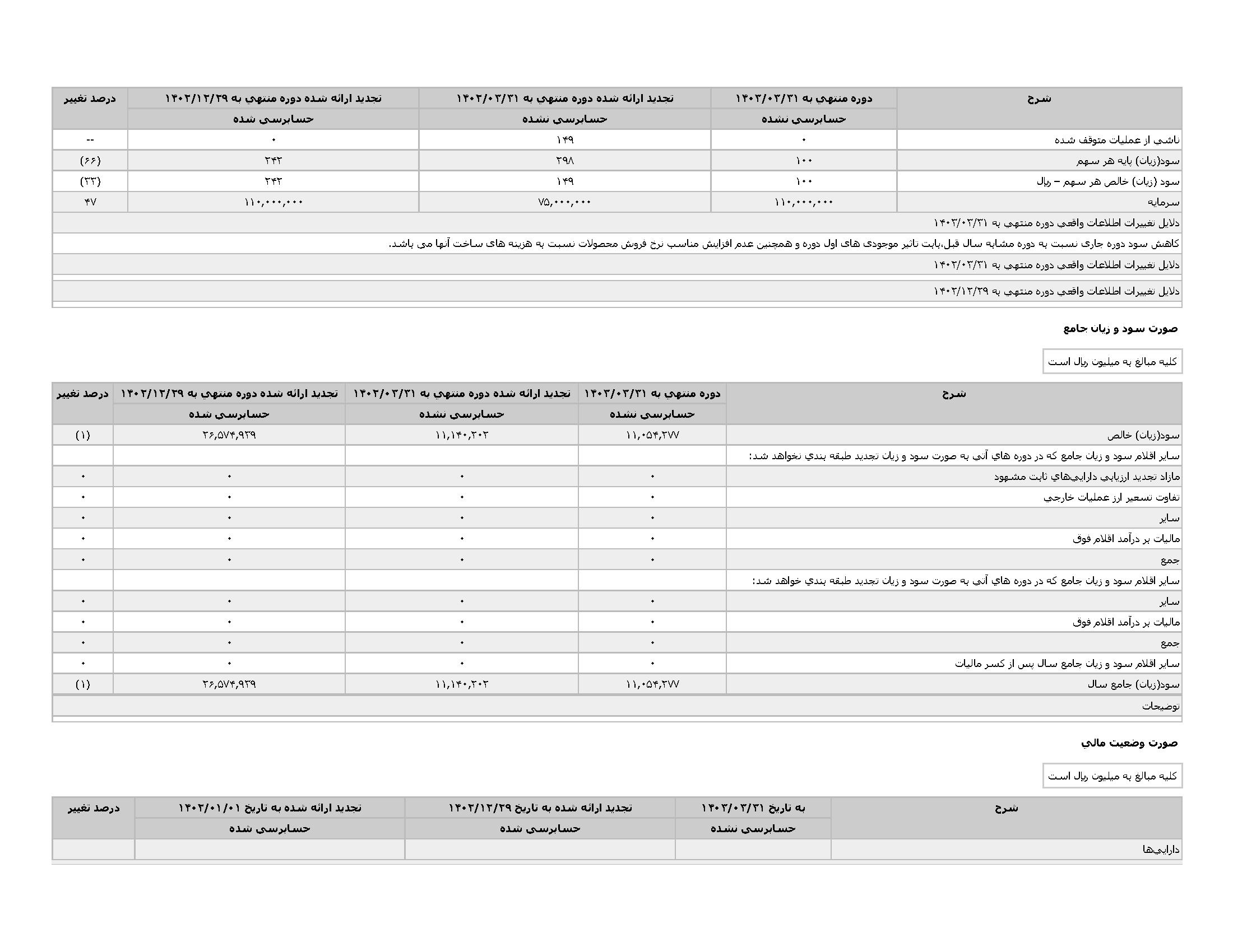 اطلاعات و صورت های مالی میان دورهای سه ماهه منتهی به 1403/03/31 (حسابرسی نشده)