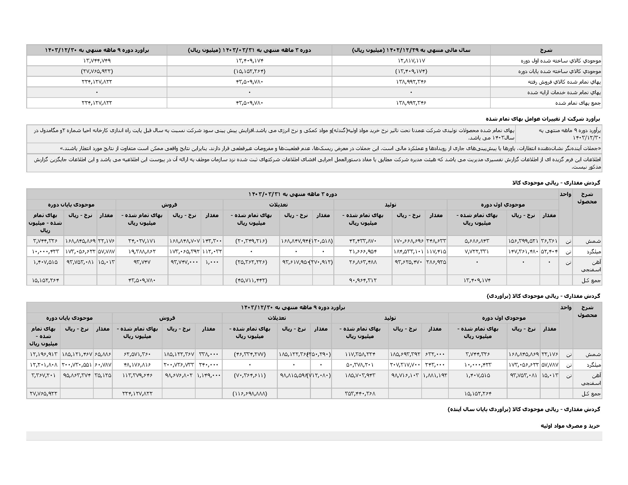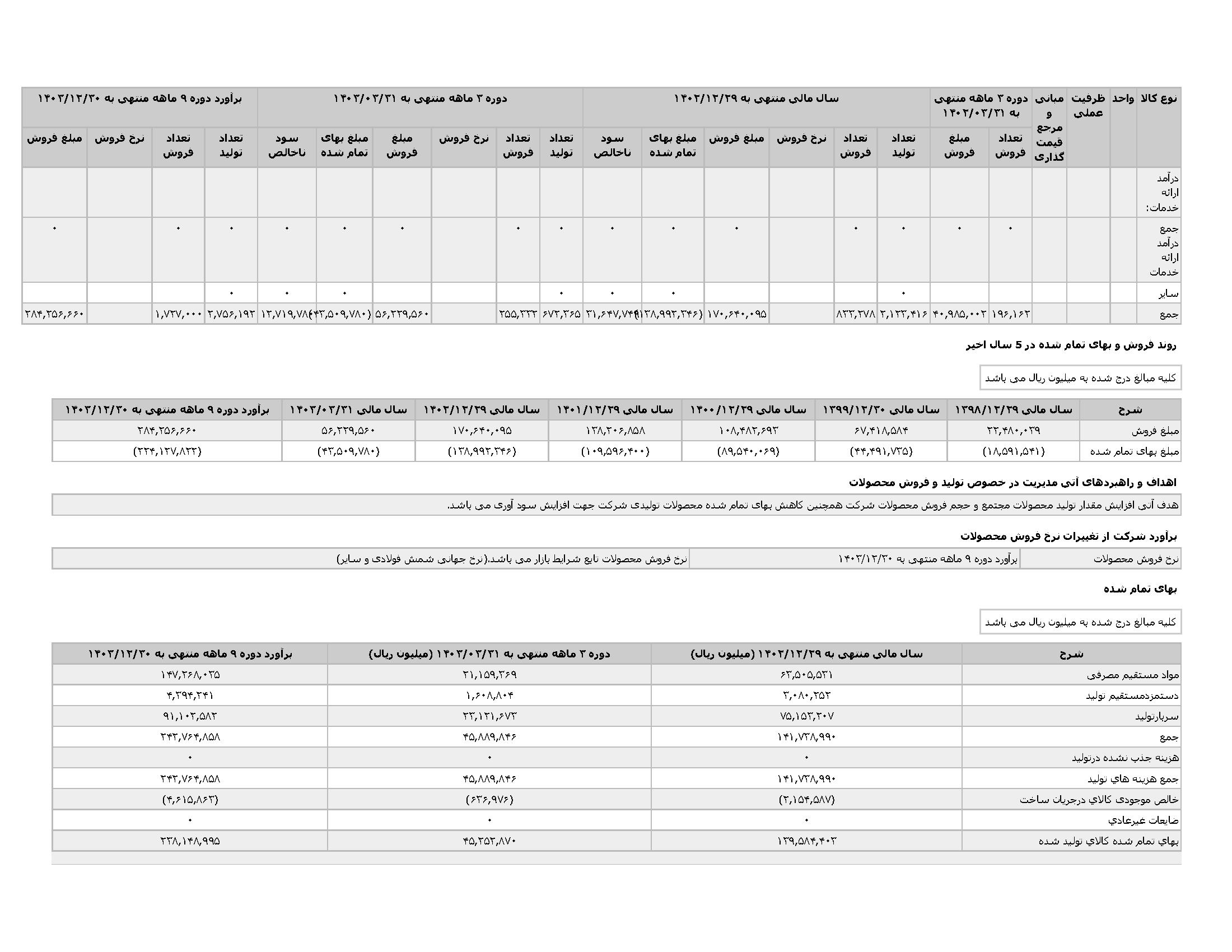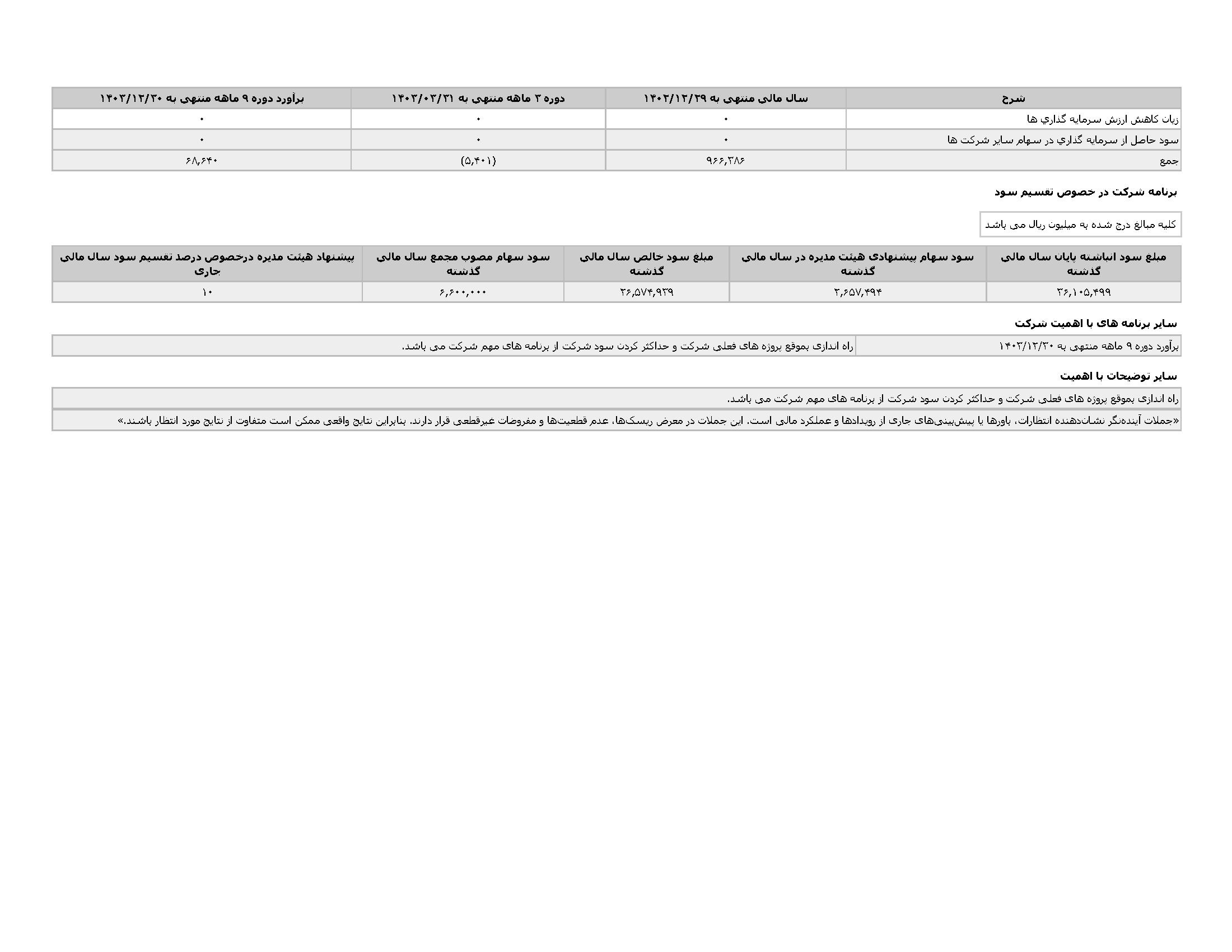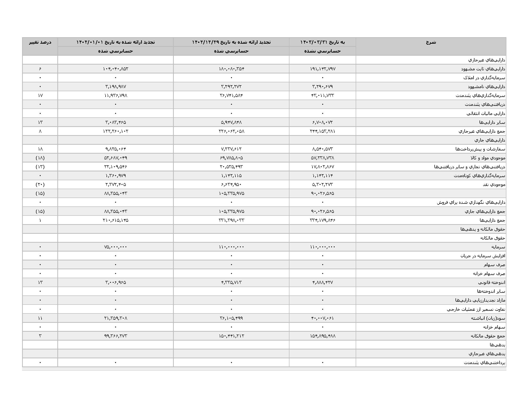 اطلاعات و صورت های مالی میان دورهای سه ماهه منتهی به 1403/03/31 (حسابرسی نشده)