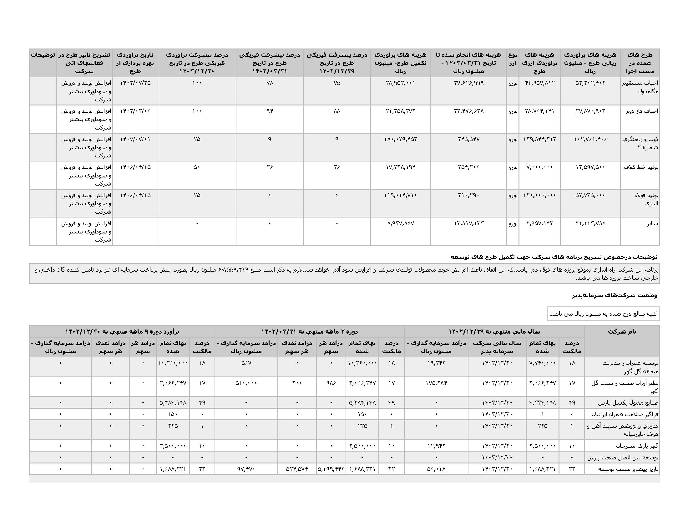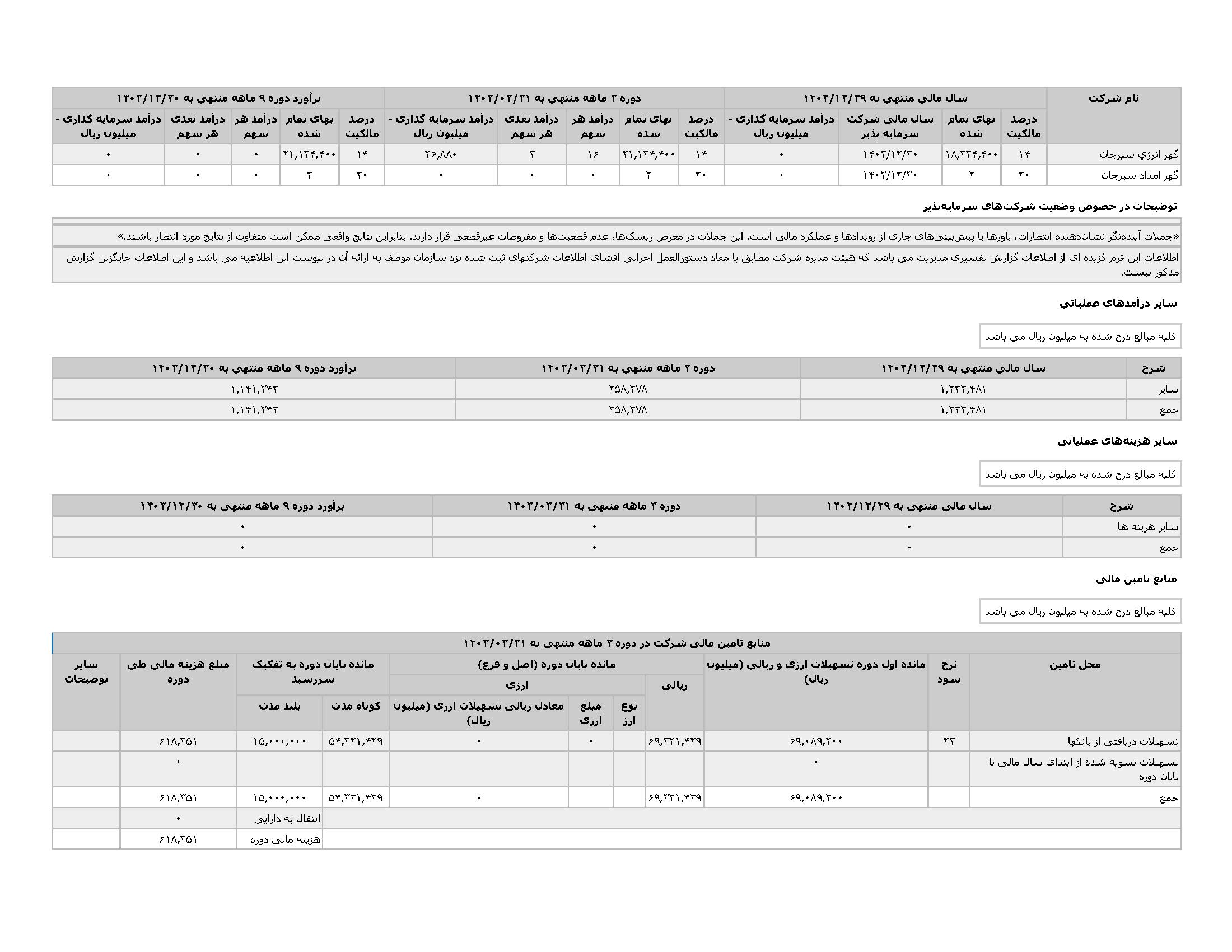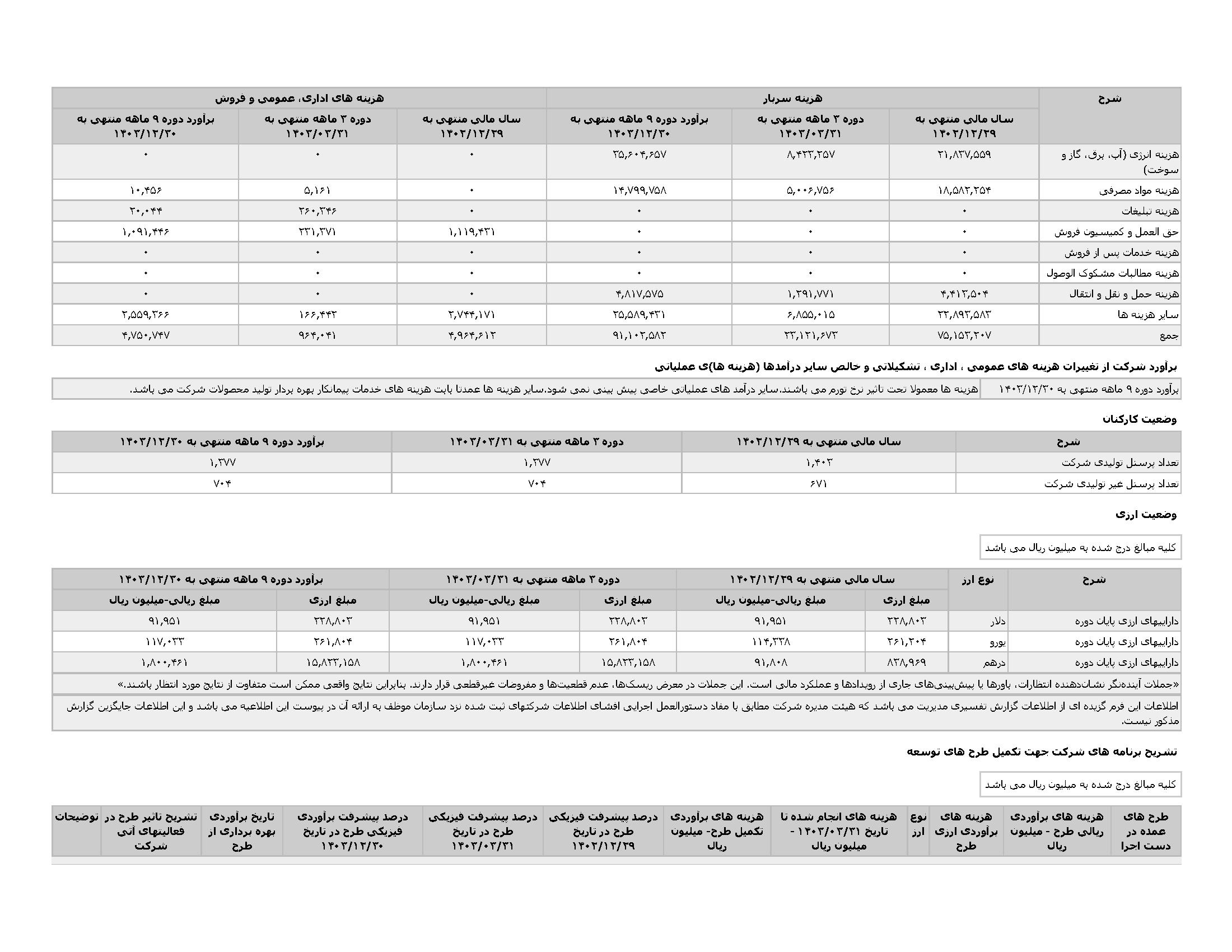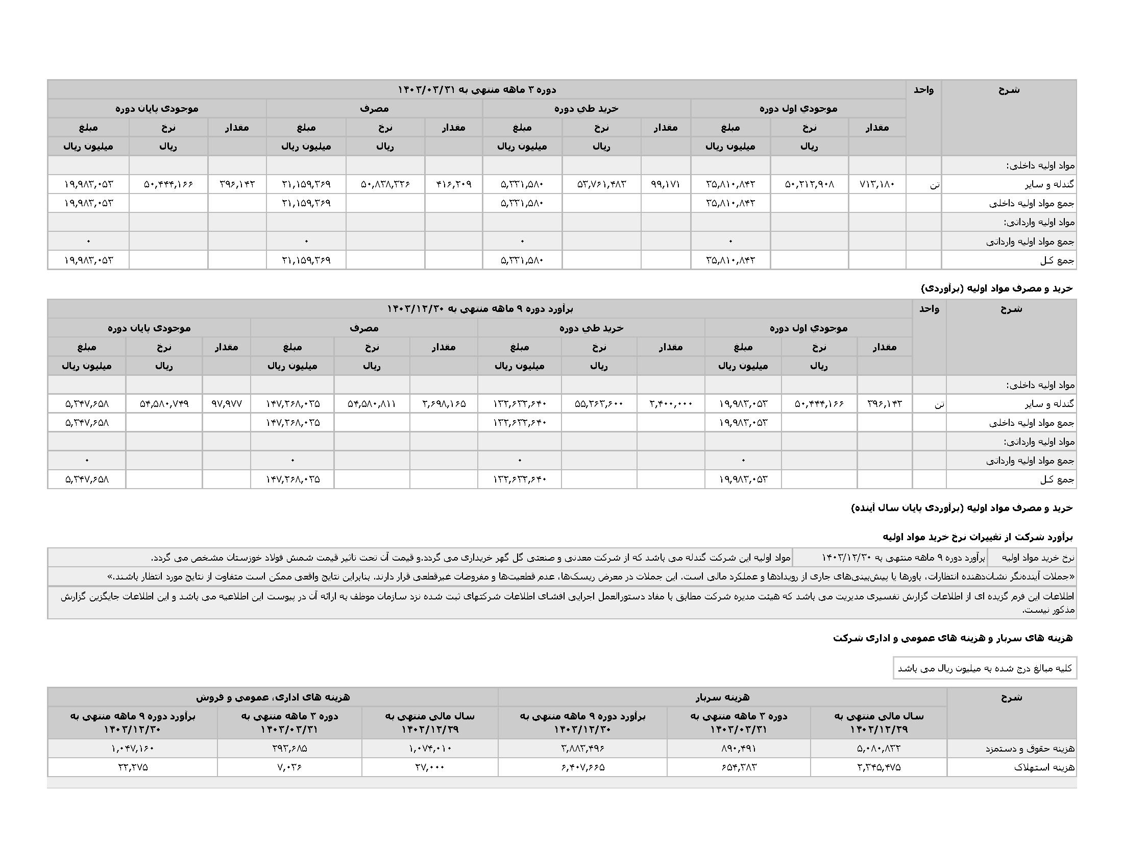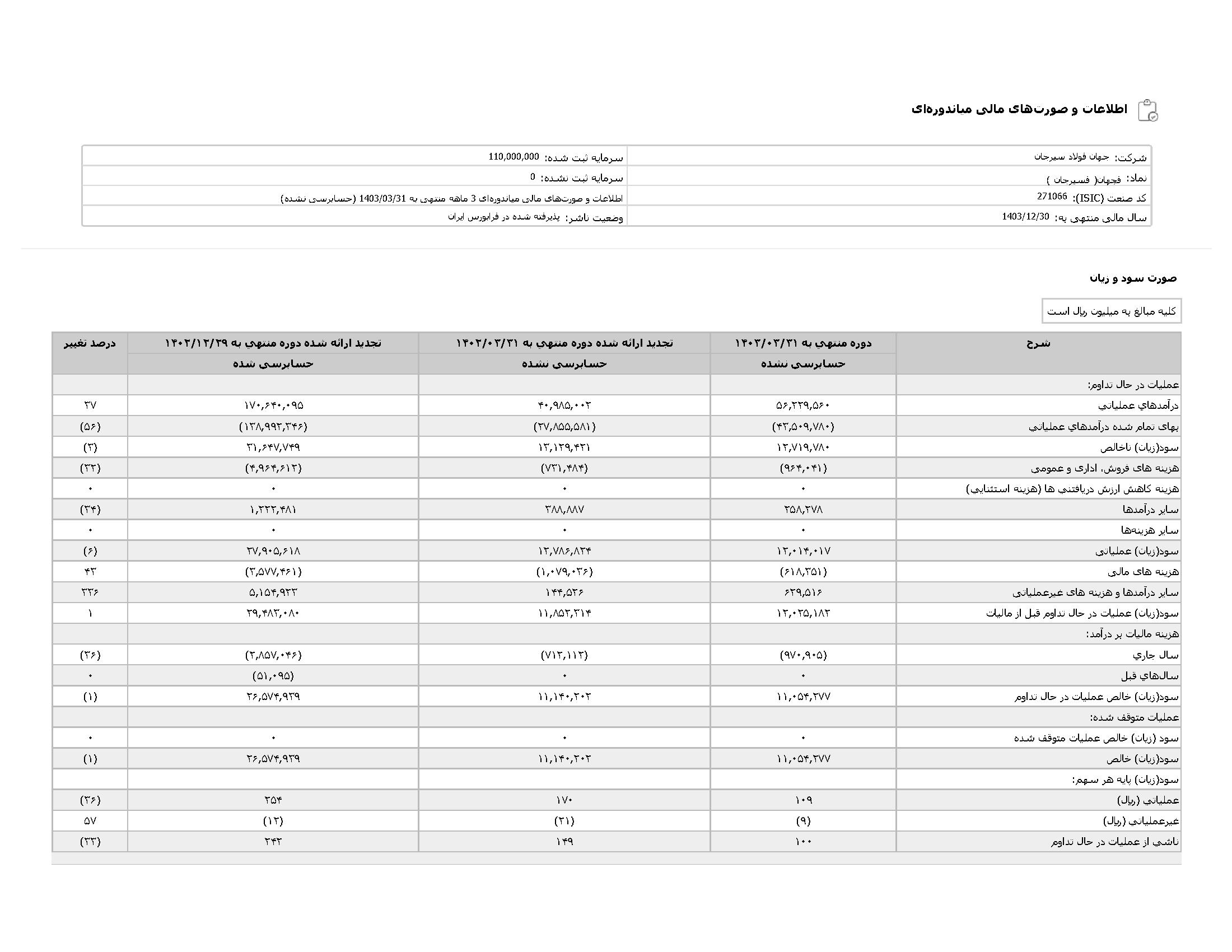 اطلاعات و صورت های مالی میان دورهای سه ماهه منتهی به 1403/03/31 (حسابرسی نشده)
