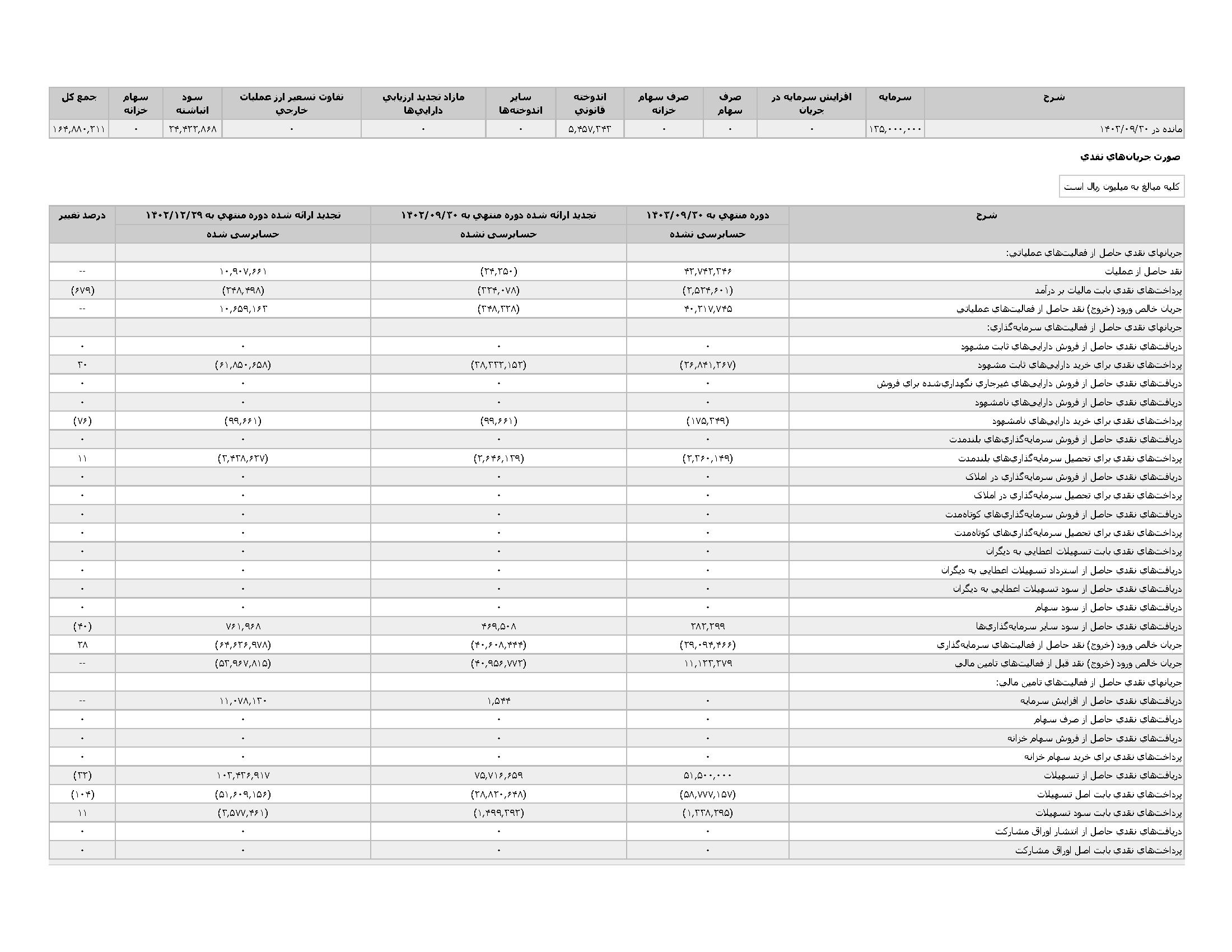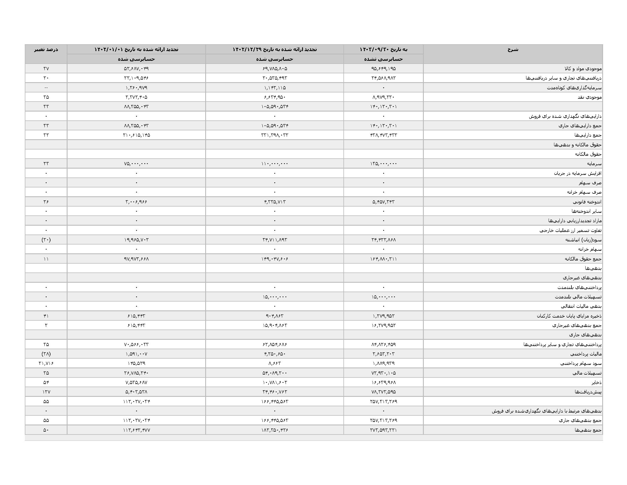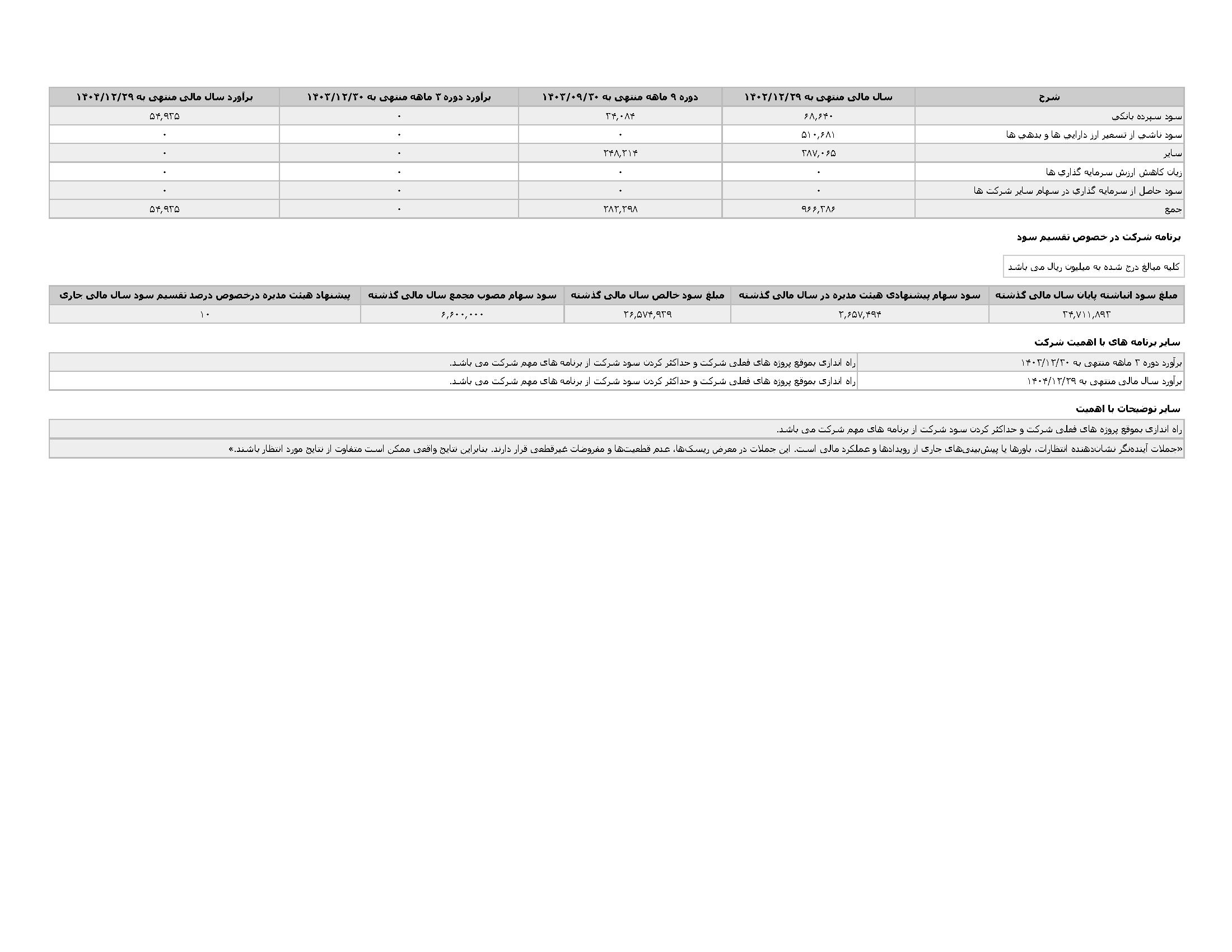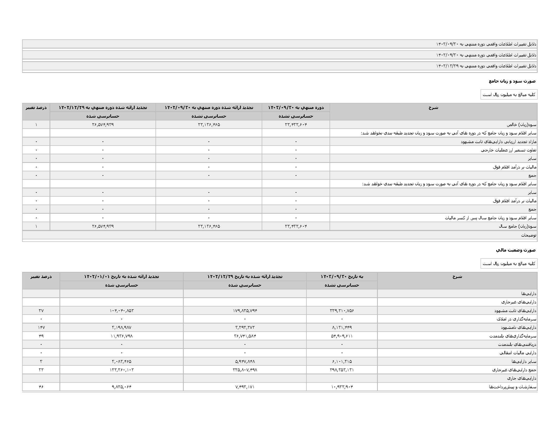 صورتهای مالی میاندورهای دوره ۹ ماهه منتهی به ۱۴۰۳/۰۹/۳۰ (حسابرسی نشده)