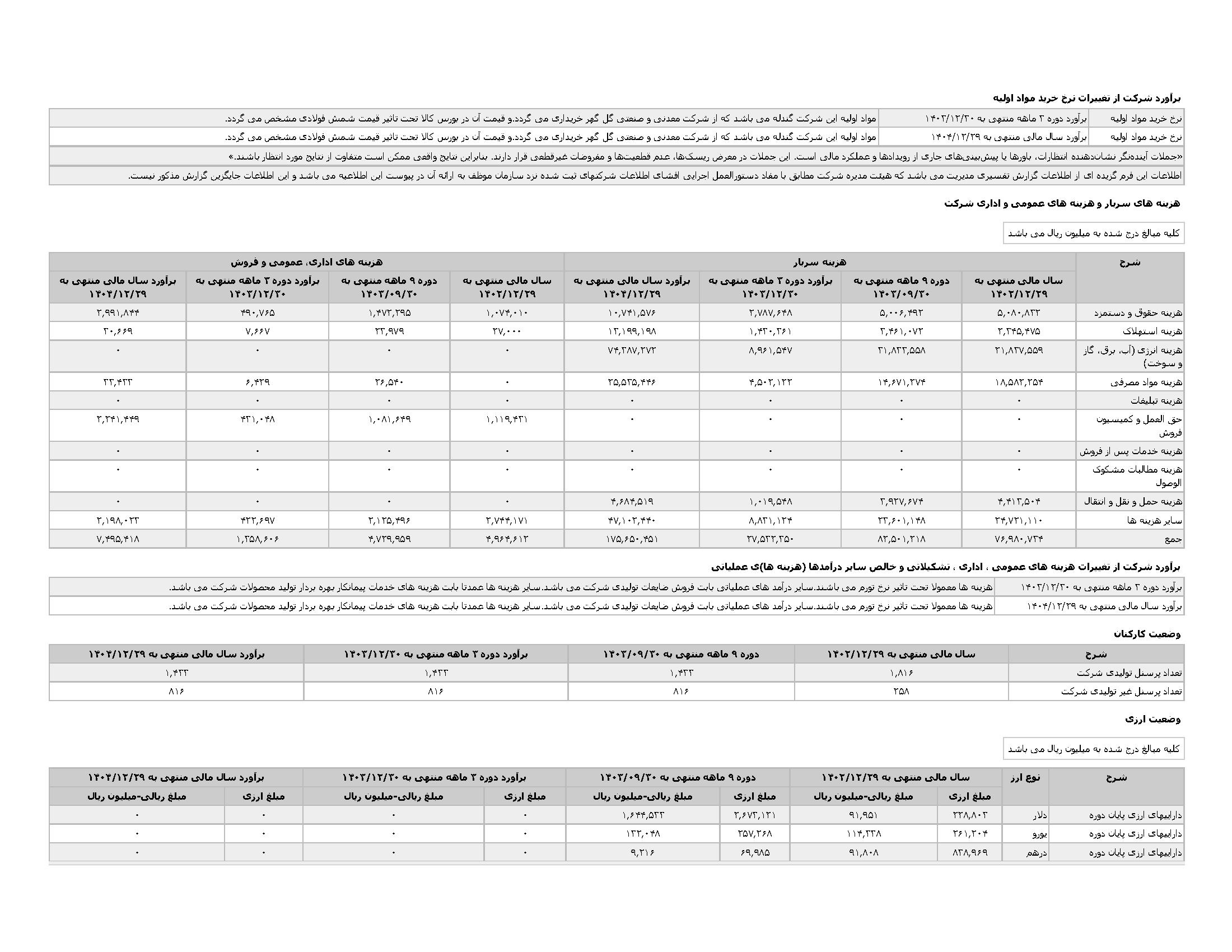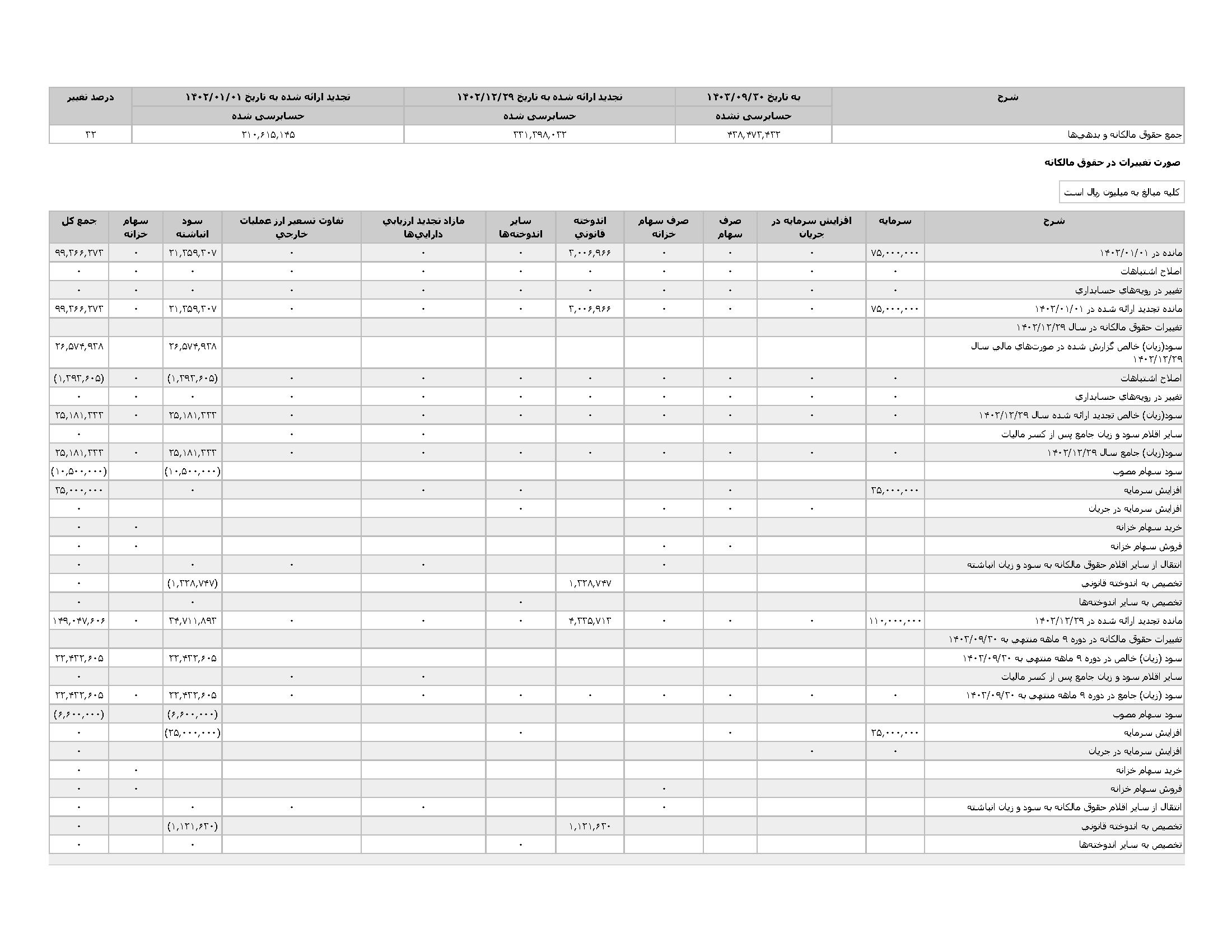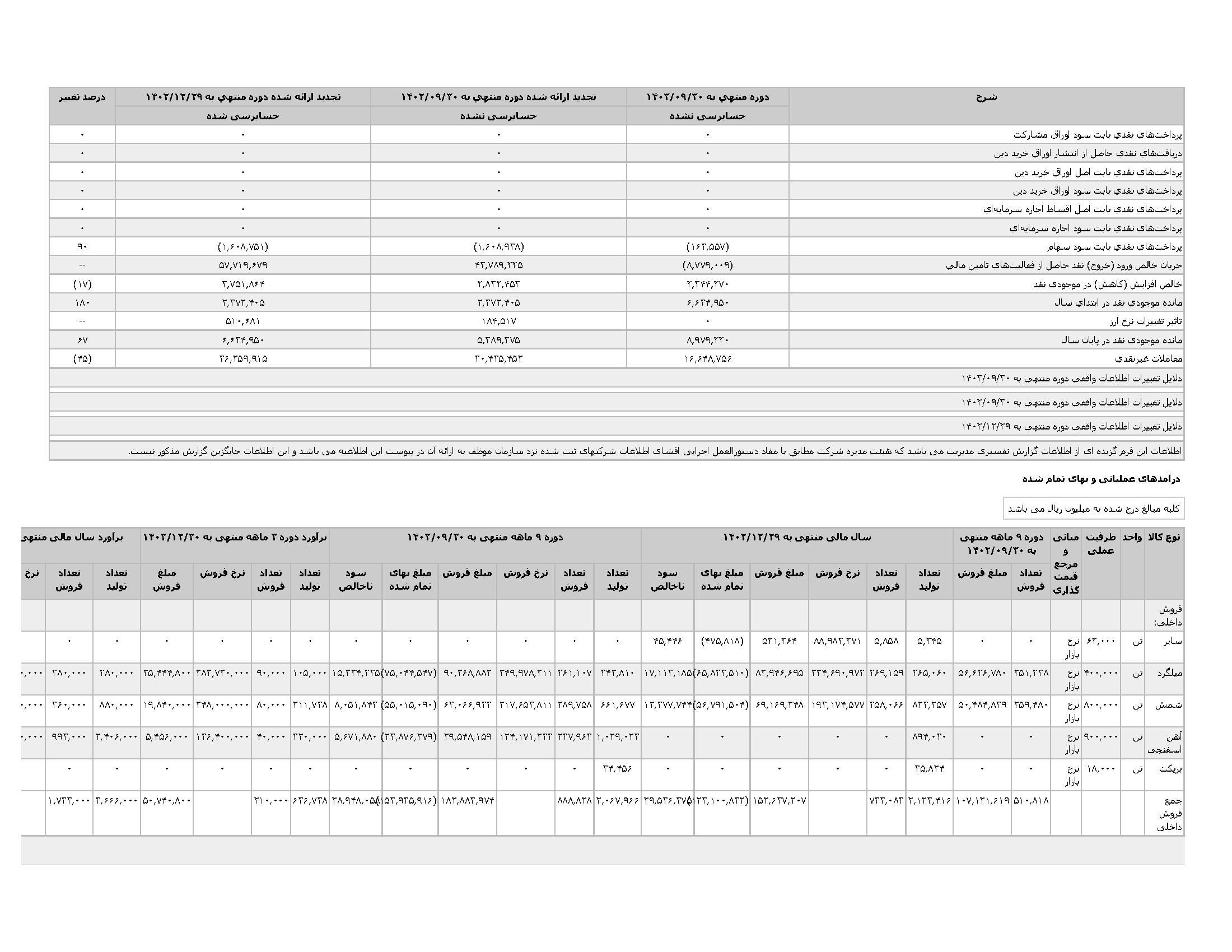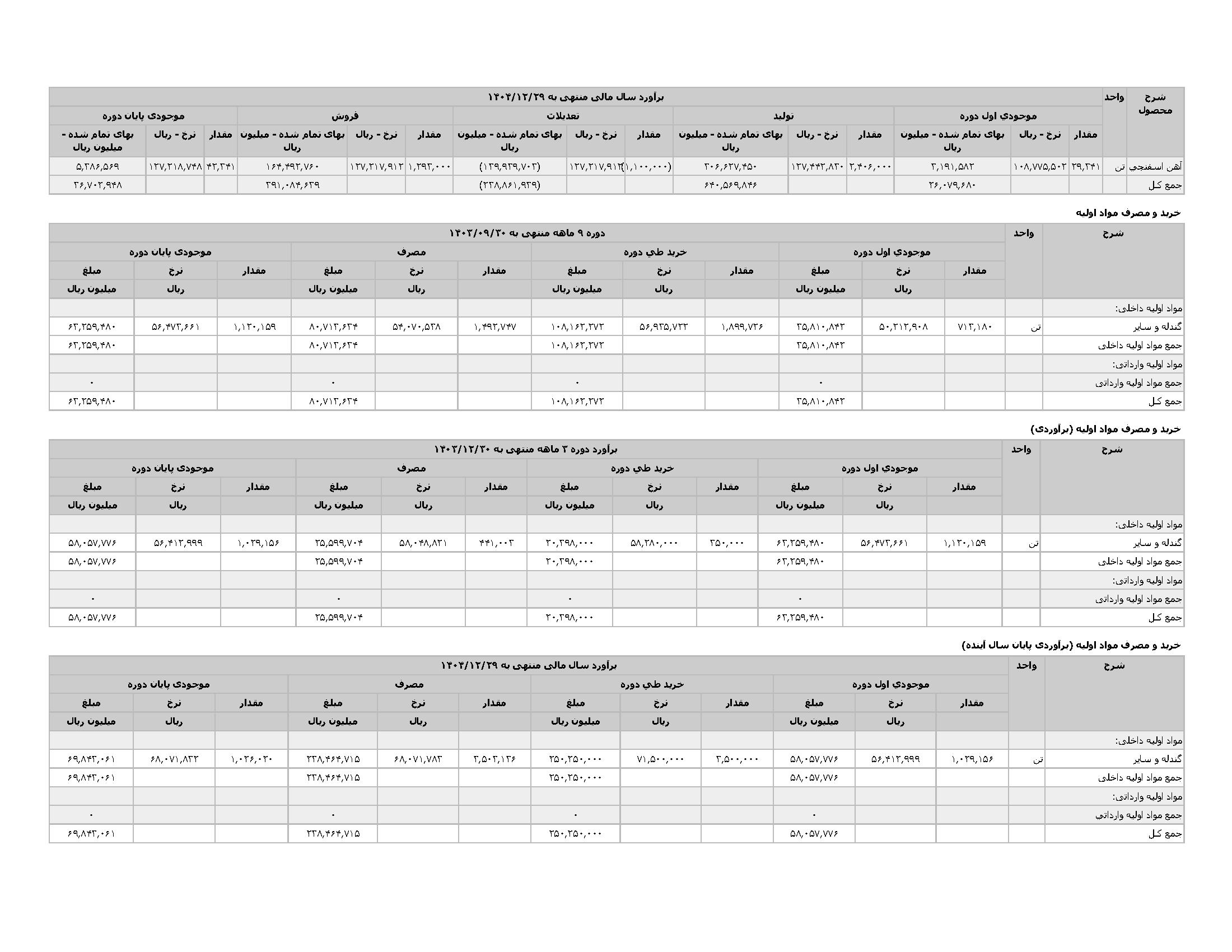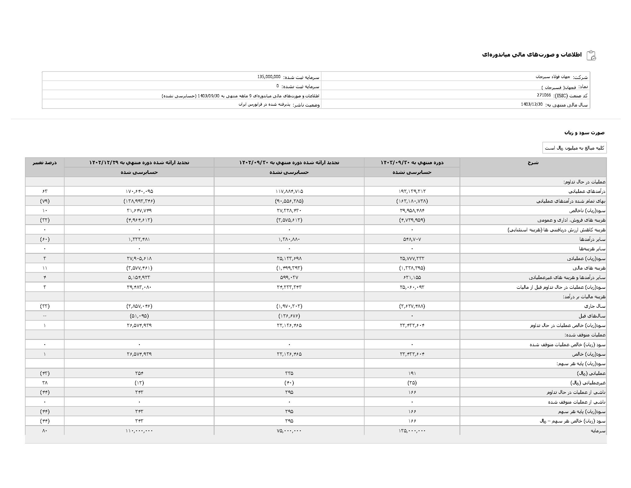 صورتهای مالی میاندورهای دوره ۹ ماهه منتهی به ۱۴۰۳/۰۹/۳۰ (حسابرسی نشده)