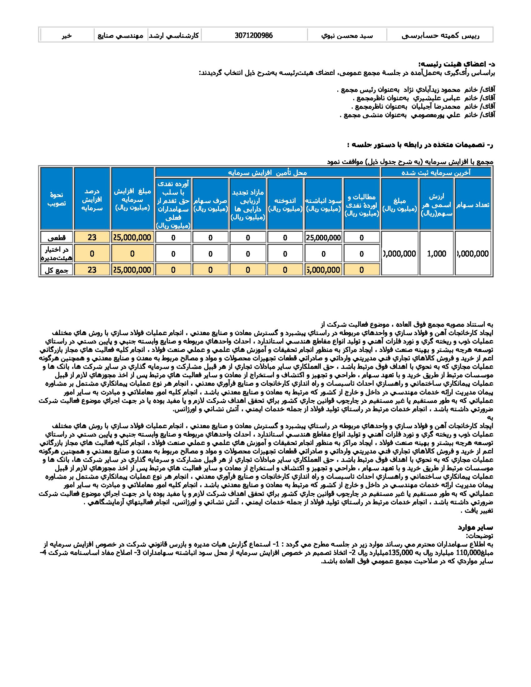 تصمیمات مجمع عمومی فوق العاده دوره ۱۲ ماهه منتهی به ۱۴۰۳/۱۲/۳۰